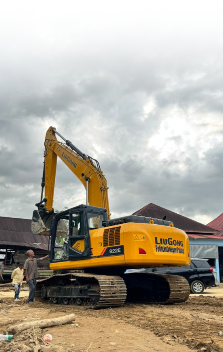 In this emergency operation, LiuGong Indonesia urgently coordinated the deployment of a 922E excavator to the affected area. The machine was originally part of a vocational training program jointly established by LiuGong and Politeknik Negeri Padang for heavy equipment education. Following the disaster, LiuGong Indonesia immediately communicated with the school and local authorities to transfer the machine to Batu Busuk Village in the Pauh District of Padang—one of the hardest-hit areas—to support road clearance and site cleanup.